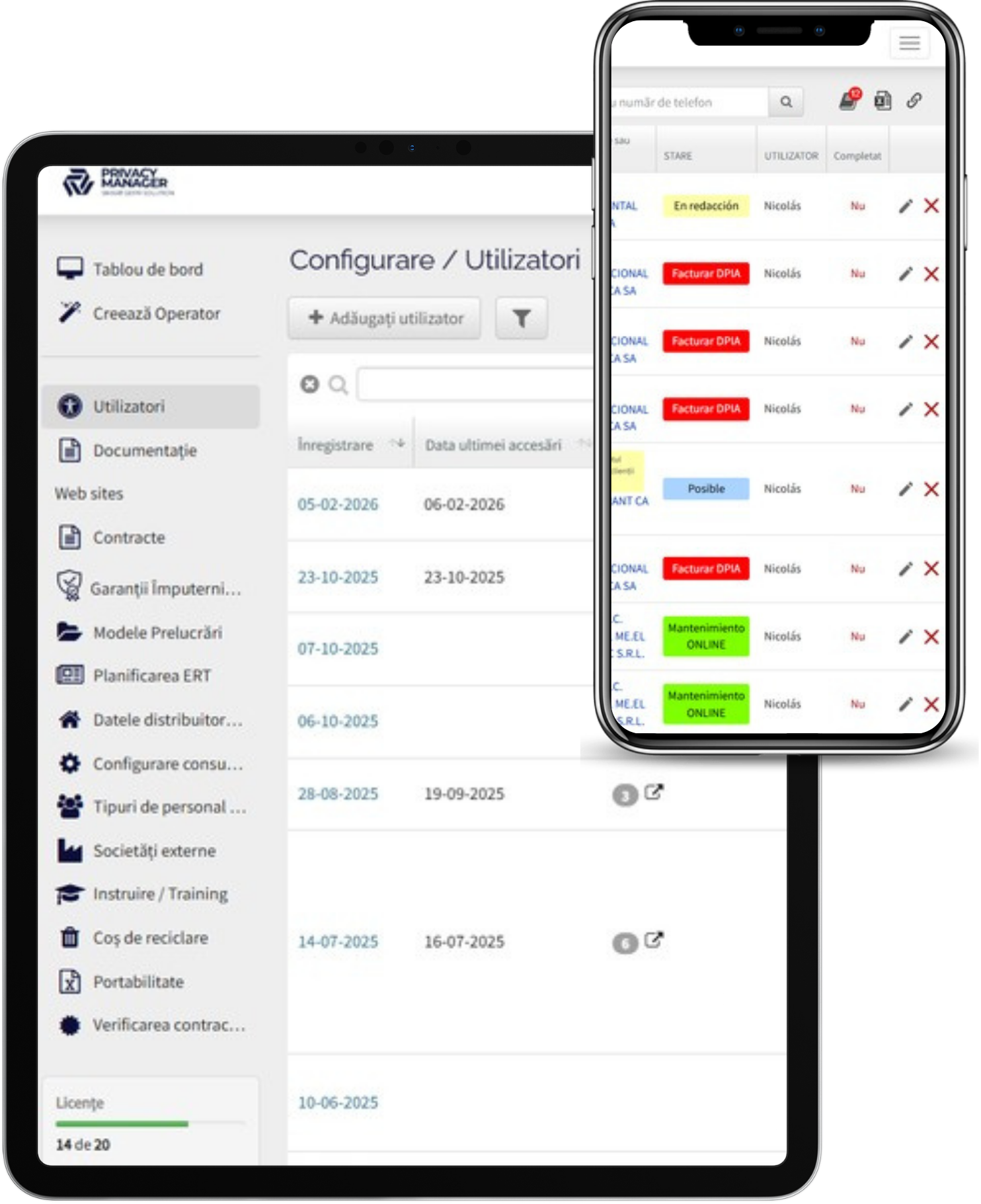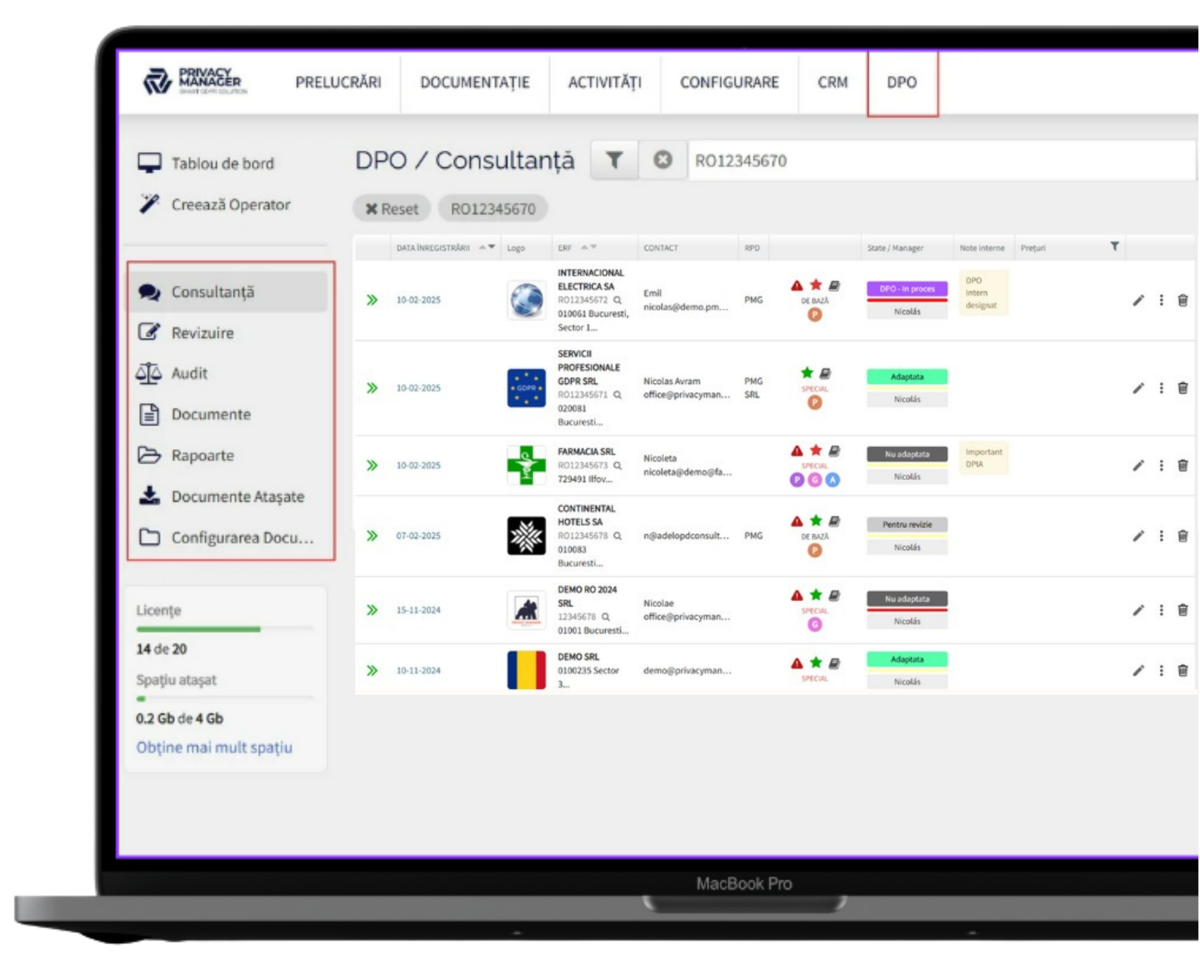Privacy Manager este o platformă profesională SaaS GDPR 360, folosită pe scară largă, validată de piață și cu suport tehnic/legal aplicat.