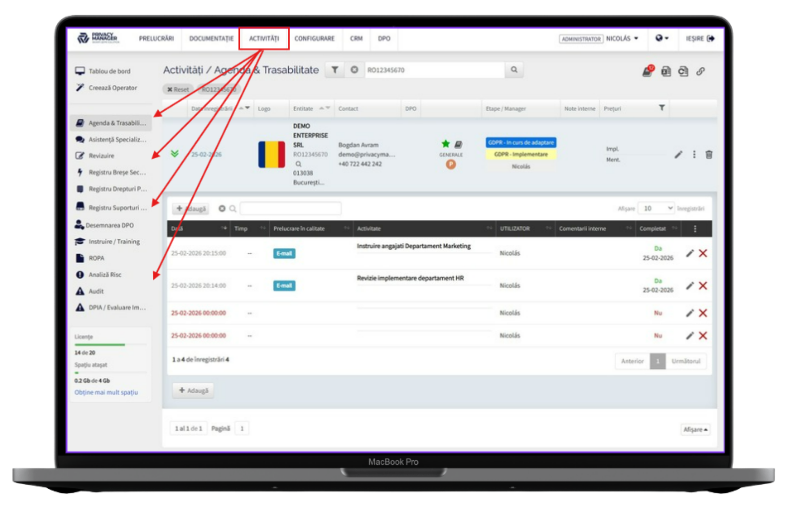 Platformă completă pentru conformitate GDPR 360, relații cu clienții și organizare internă.